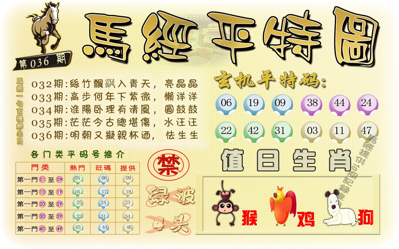 036期:香港六合彩『马经平特图』