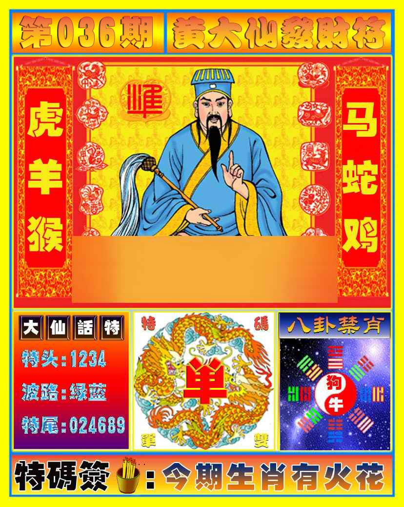 036期: 香港六合彩 『黄大仙灵码』已更新